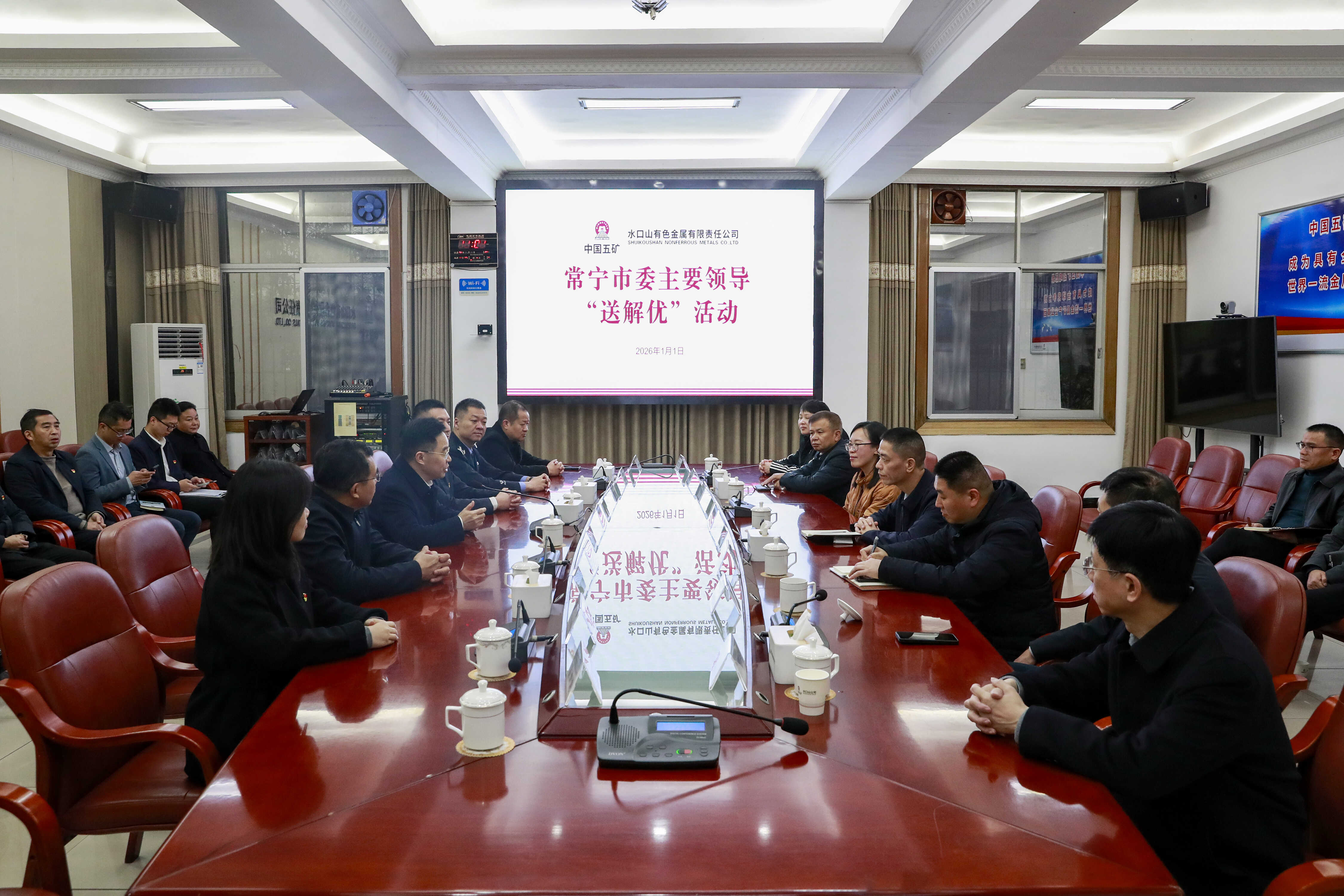 1月1日,新年第一天,常宁市委书记罗卫华率市领导周俊、刘新华、罗鹏、刘湘、刘向阳等一行,来水口山开展“送解优”活动,向企业送上新年问候与发展支持。公司总经理、党委副书记曹晓扬陪同并交流。