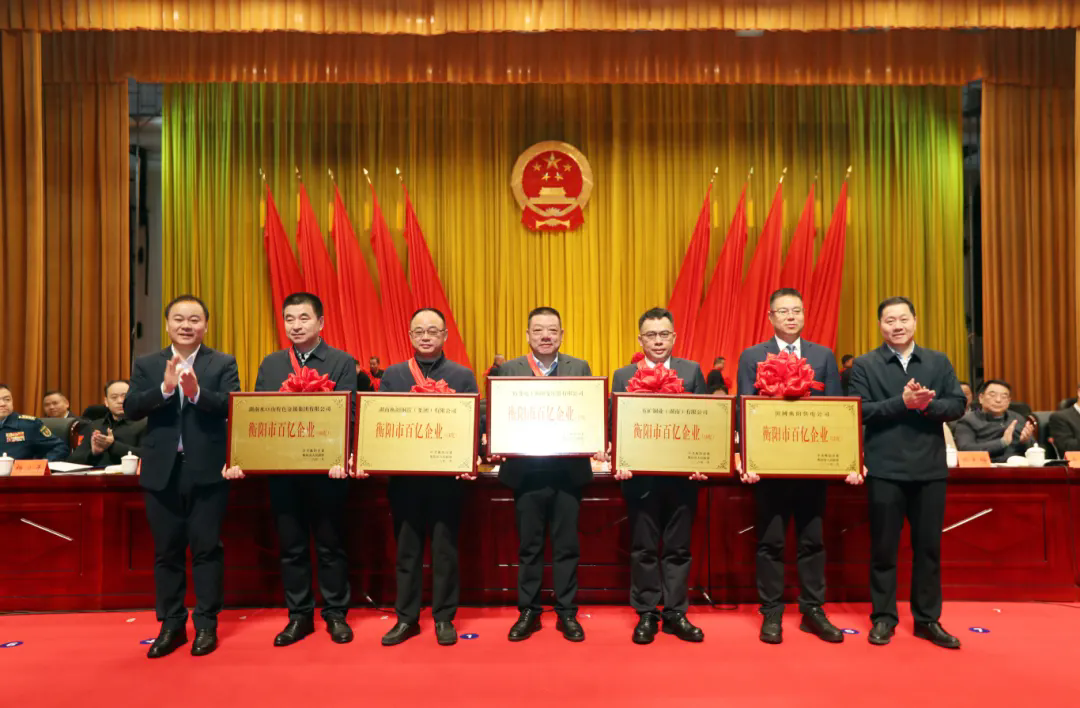 1月5日,衡阳市高质量发展大会隆重举行,水口山公司凭借亮眼的年度经营业绩,成功跻身衡阳市“百亿企业”行列,同时位居2025年纳税贡献榜前三甲,用硬核实力为雁城高质量发展注入强劲动能。公司党委书记、董事长闫友上台接受授牌,并作为新晋百亿企业代表发言。